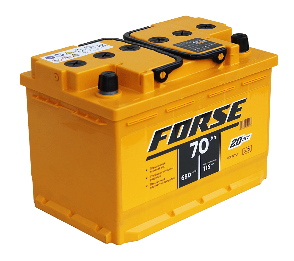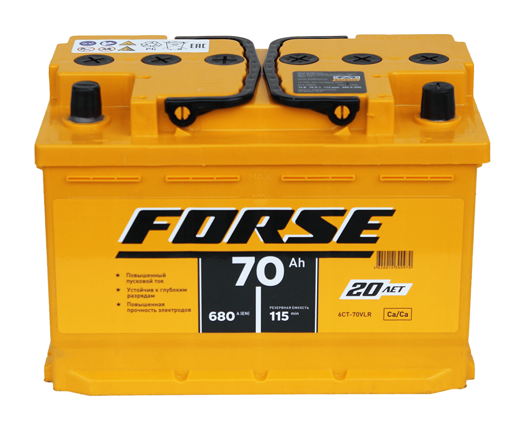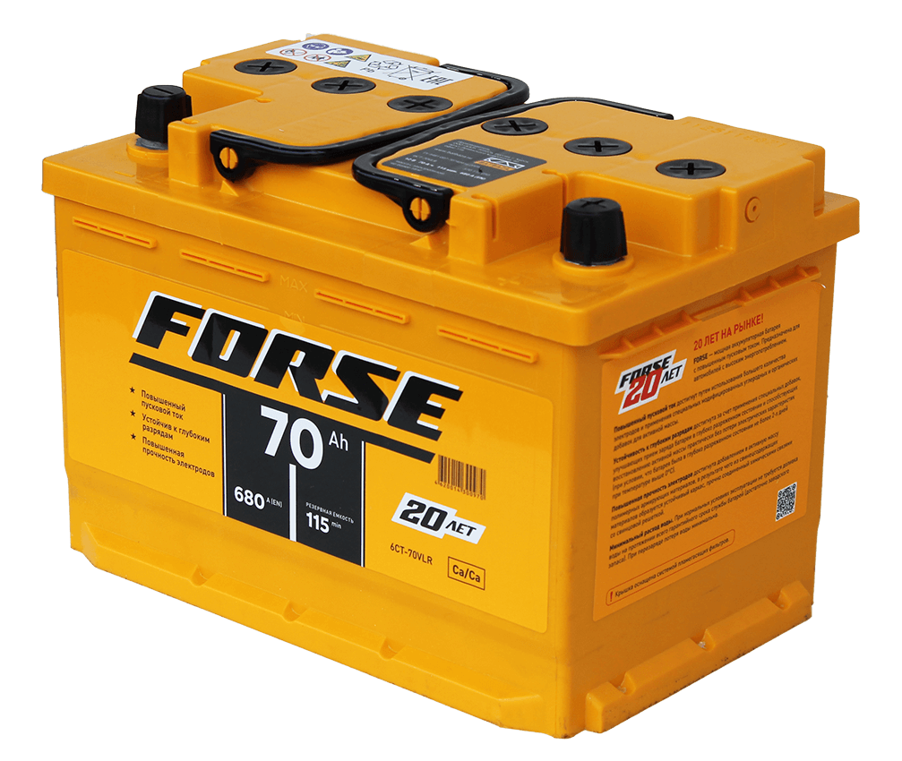 Аккумуляторы Forse – это мощь, надежность и 20-летняя история успеха на аккумуляторном рынке России, подтвержденная авторитетными рейтингами. В 2024 году бренд вошел в ТОП-3 рейтинга «Бренд года» по версии журнала «За рулём». Эти батареи разработаны для автомобилей с увеличенным энергопотреблением и отличаются повышенными пусковыми токами, обеспечивая уверенный запуск двигателя в любых условиях. Ключевым преимуществом Forse является увеличенный пусковой ток, который достигается за счет кальциевой технологии, использования в среднем на 20% большего количества электродов и специальных модифицированных добавок в активной массе. Это гарантирует дополнительную мощность при холодном пуске: напряжение на клеммах падает меньше, чем у стандартных батарей, повышая частоту вращения коленчатого вала. Конструктивно обеспечена максимальная безопасность и удобство: газоотводные каналы оснащены фильтрами-пламегасителями, а пробки защищены планкой от пыли и грязи. Аккумуляторы Forse выделяются высокой устойчивостью к глубоким разрядам благодаря специальным добавкам, которые улучшают прием заряда и способствуют восстановлению активной массы с минимальной потерей характеристик (при условии, что разряд длился не более двух дней при температуре выше 0°C). Срок службы продлевают электроды повышенной прочности, усиленные полимерными материалами и обработкой паром. Благодаря минимальному расходу воды, доливка не требуется на протяжении всего гарантийного срока при нормальных условиях эксплуатации.